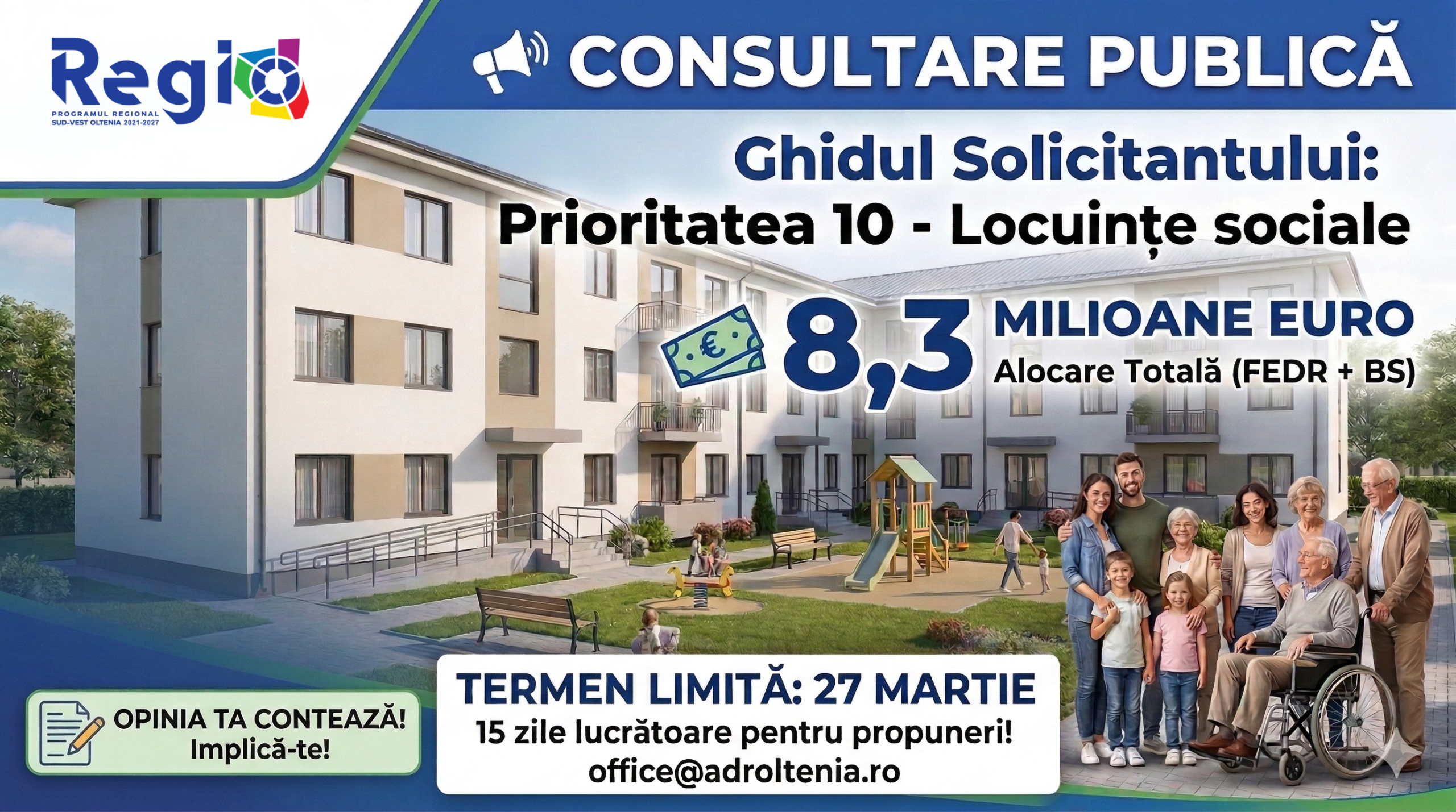 CONSULTARE PUBLICĂ: 8,3 milioane de euro pentru locuințe sociale în Oltenia!