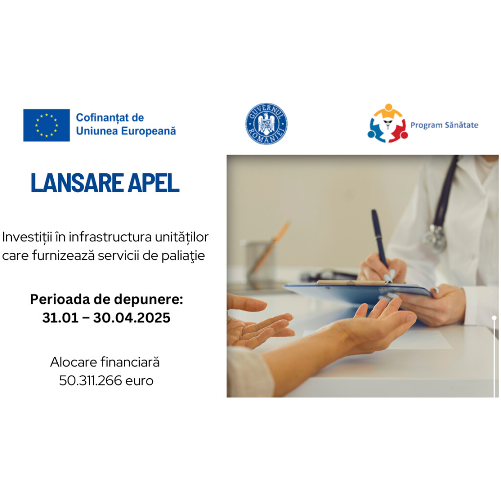 Lansare apel: Finanțare pentru infrastructura serviciilor de paliație