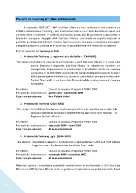 infratire institutionala (Twinning), prin intermediul carora s-a urmarit dezvoltarea capacitatii