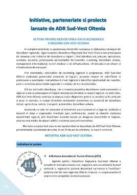 Marturie a acestui fapt stau numeroasele initiative dezvoltate de ADR Sud-Vest Oltenia,
