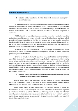 investitiilor in fiecare centru istoric, ADR Sud-Vest Oltenia a lansat, in anul 2010, initiativa de