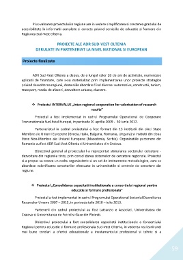 PROIECTE ALE ADR SUD-VEST OLTENIA