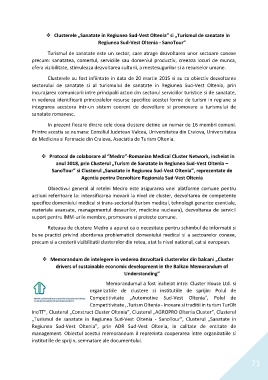 „Turismul de sanatate in Regiunea Sud-Vest Oltenia - SanoTour”, Clusterul „Sanatate in